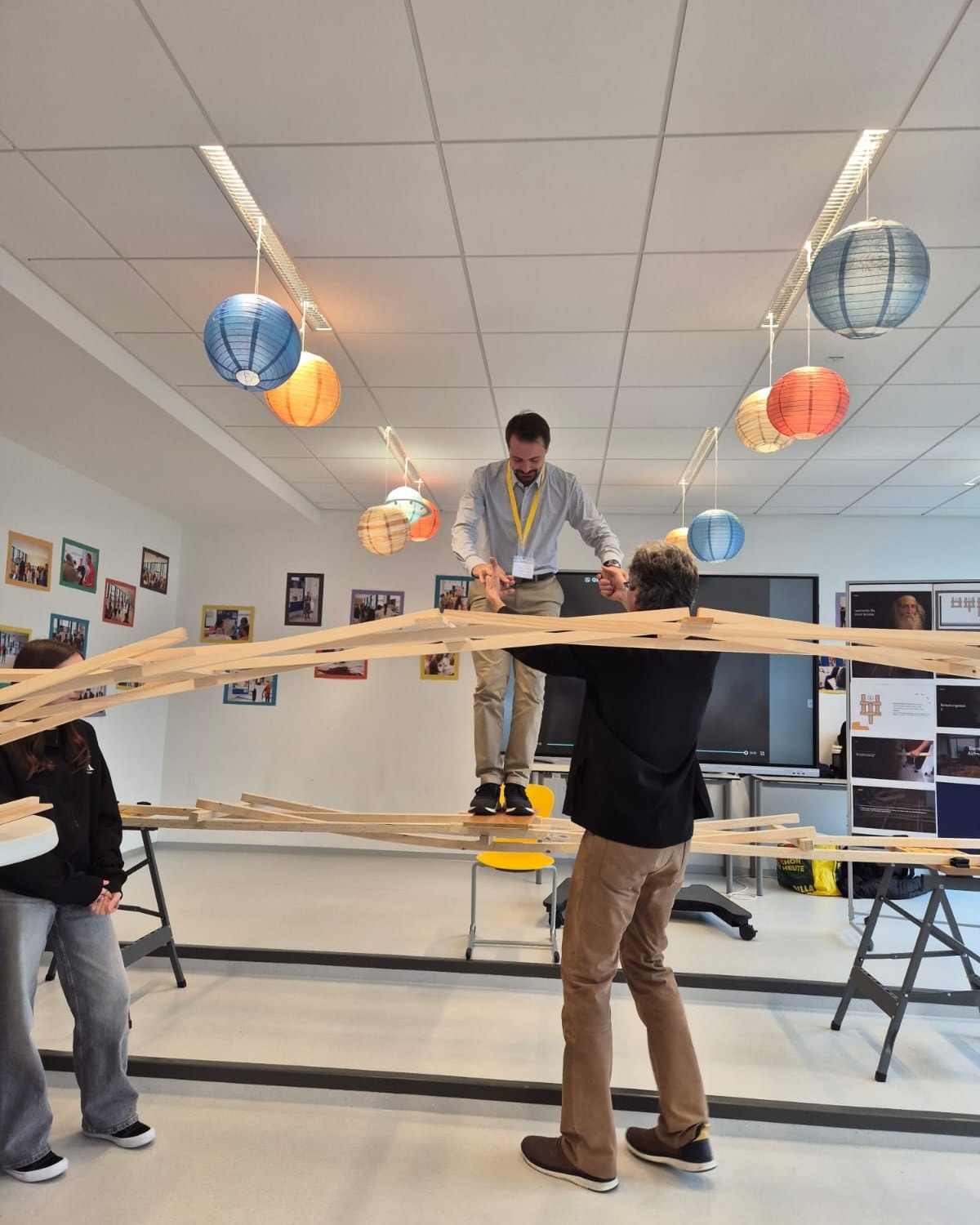 In die Welt von Leonardo da Vinci eintauchen und eine über 4 Meter lange und 1,5 Meter hohe Brücke betreten, gebaut ganz ohne Schrauben oder fixe Verbindungen – getragen nur von genialer Konstruktion.